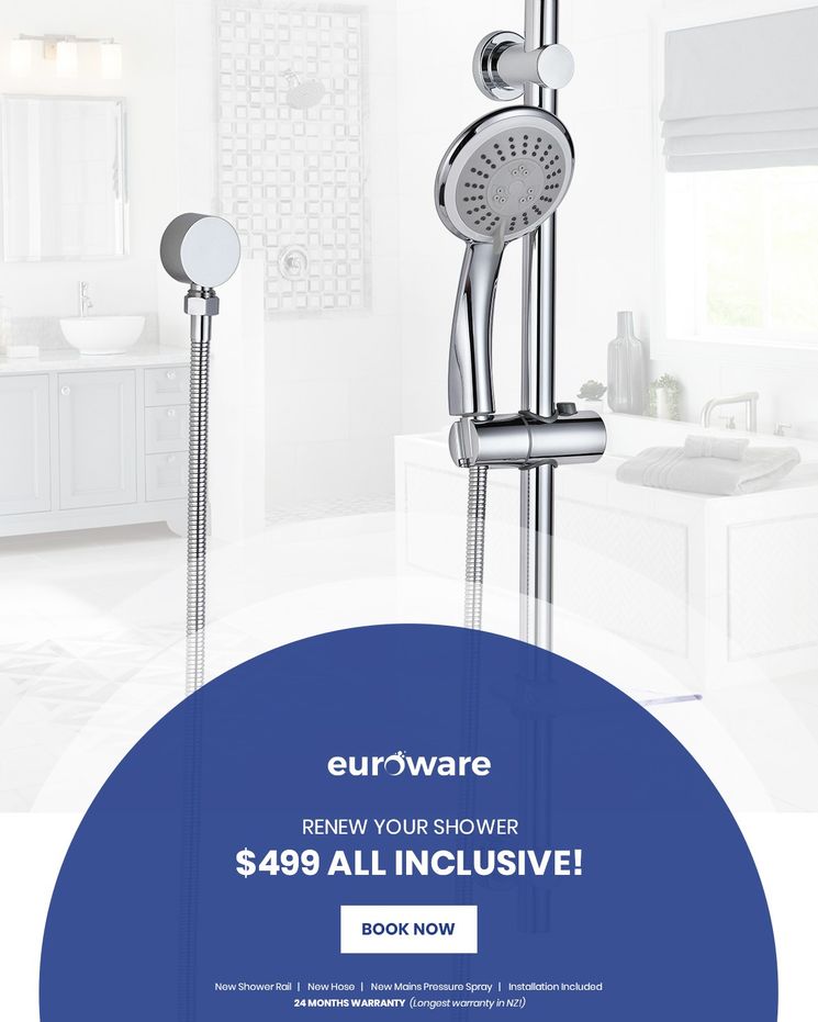 This deal includes all plumbing, fittings and full Euroware shower kit.